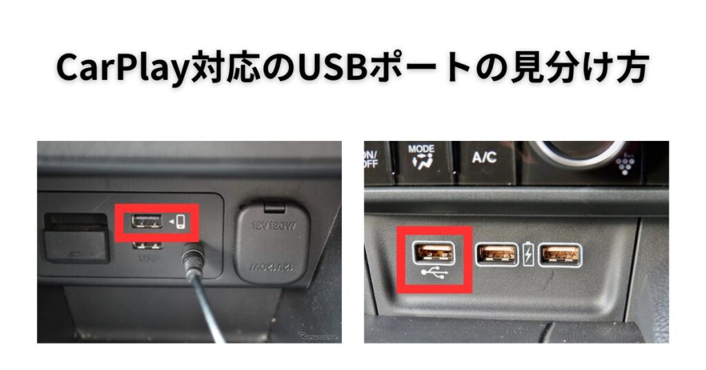 AIBOXの場合は、CarPlay対応のUSBポートに接続するだけ。