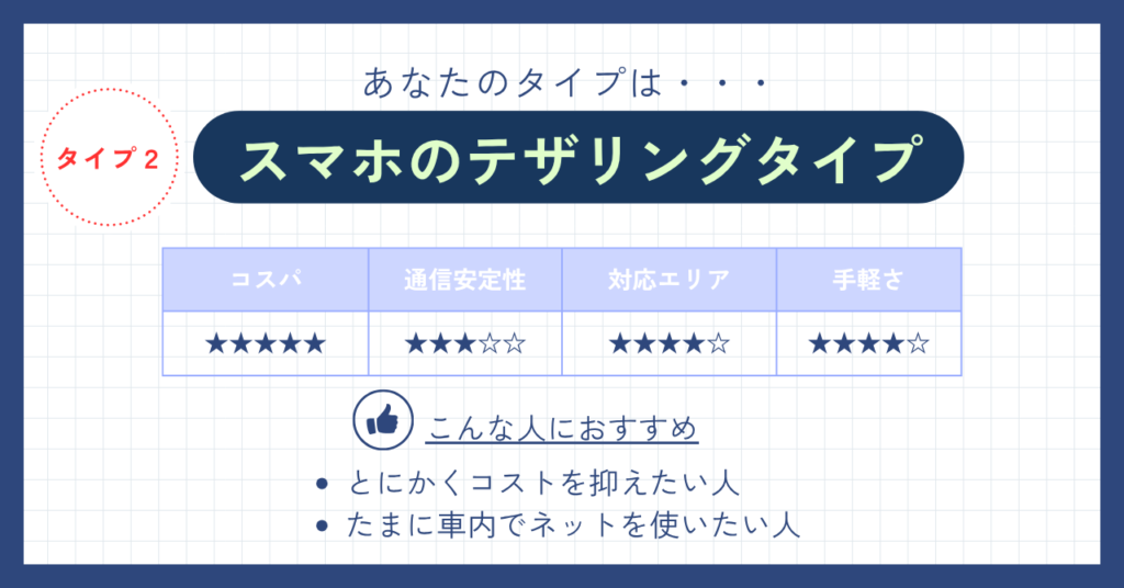 スマホのテザリングタイプ|費用を抑えて手軽に使いたい人向け