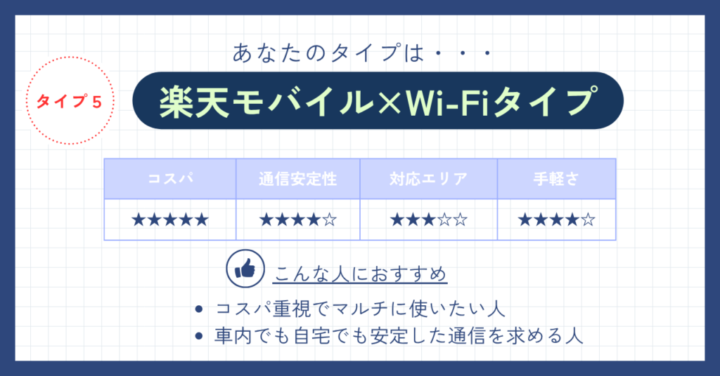 コスト⇒楽天モバイル×Wi-Fiタイプ