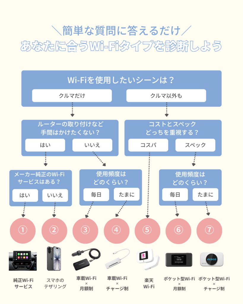 【車内でWi-Fi】あなたにおすすめなWi-Fiが見つかる!簡単7タイプ診断